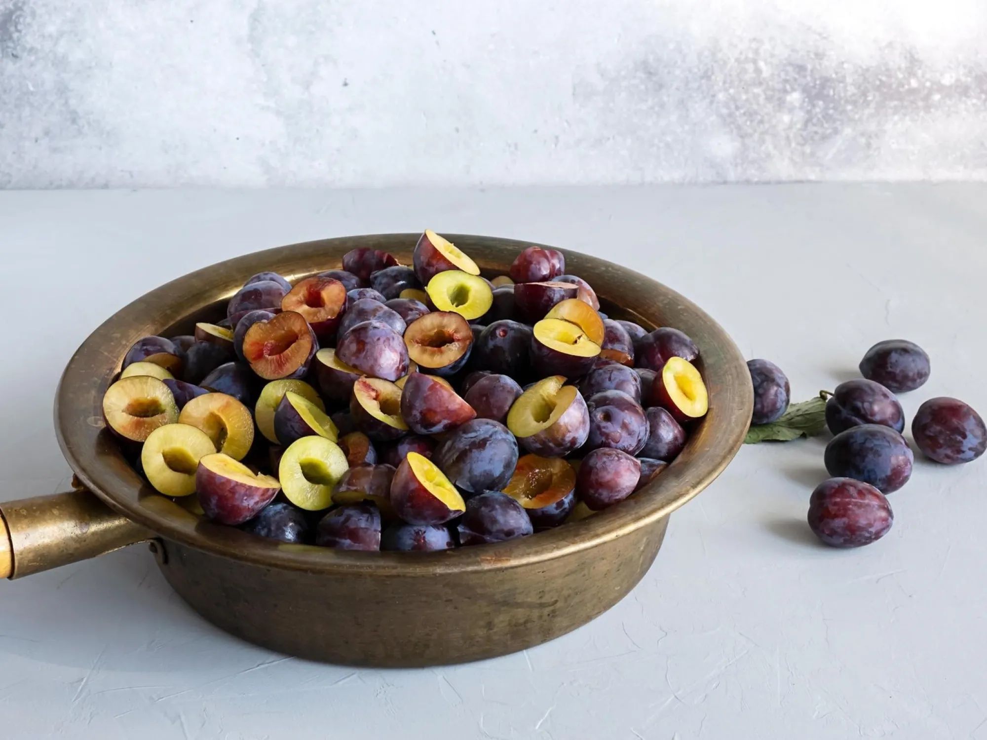1. ქლიავი კარგად გარეცხეთ, შუაზე გაჭერით და კურკები ამოიღეთ.