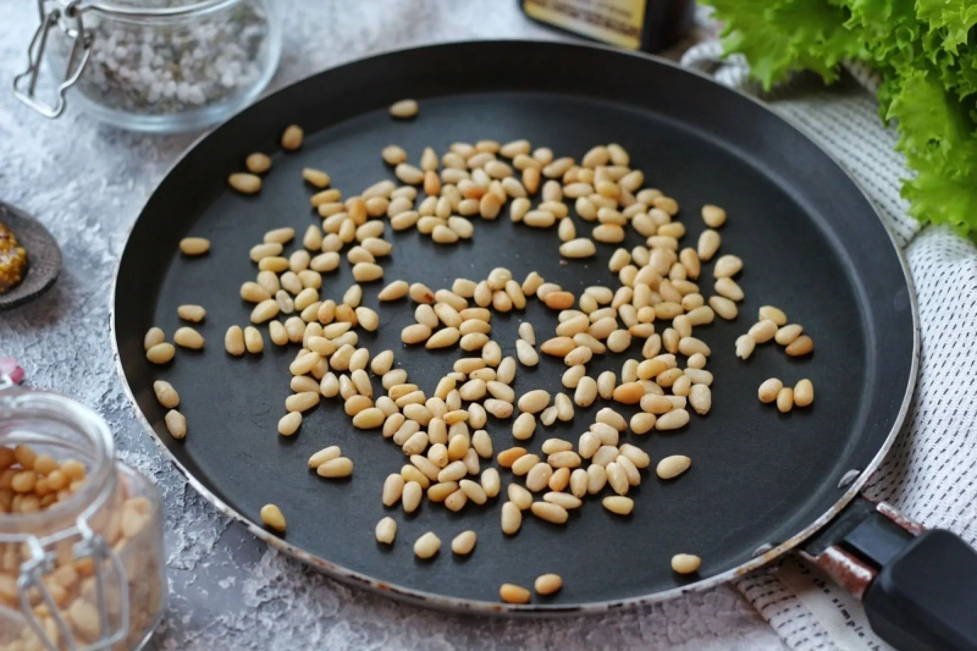 კედარის კაკალი - აუცილებლად ახალი პროდუქტი უნდა შეარჩიოთ. გამოყენებამდე კაკალი მშრალ ტაფაზე ოდნავ მოხალეთ — ასე არომატი უფრო გაძლიერდება — და მერე დაფქვით.