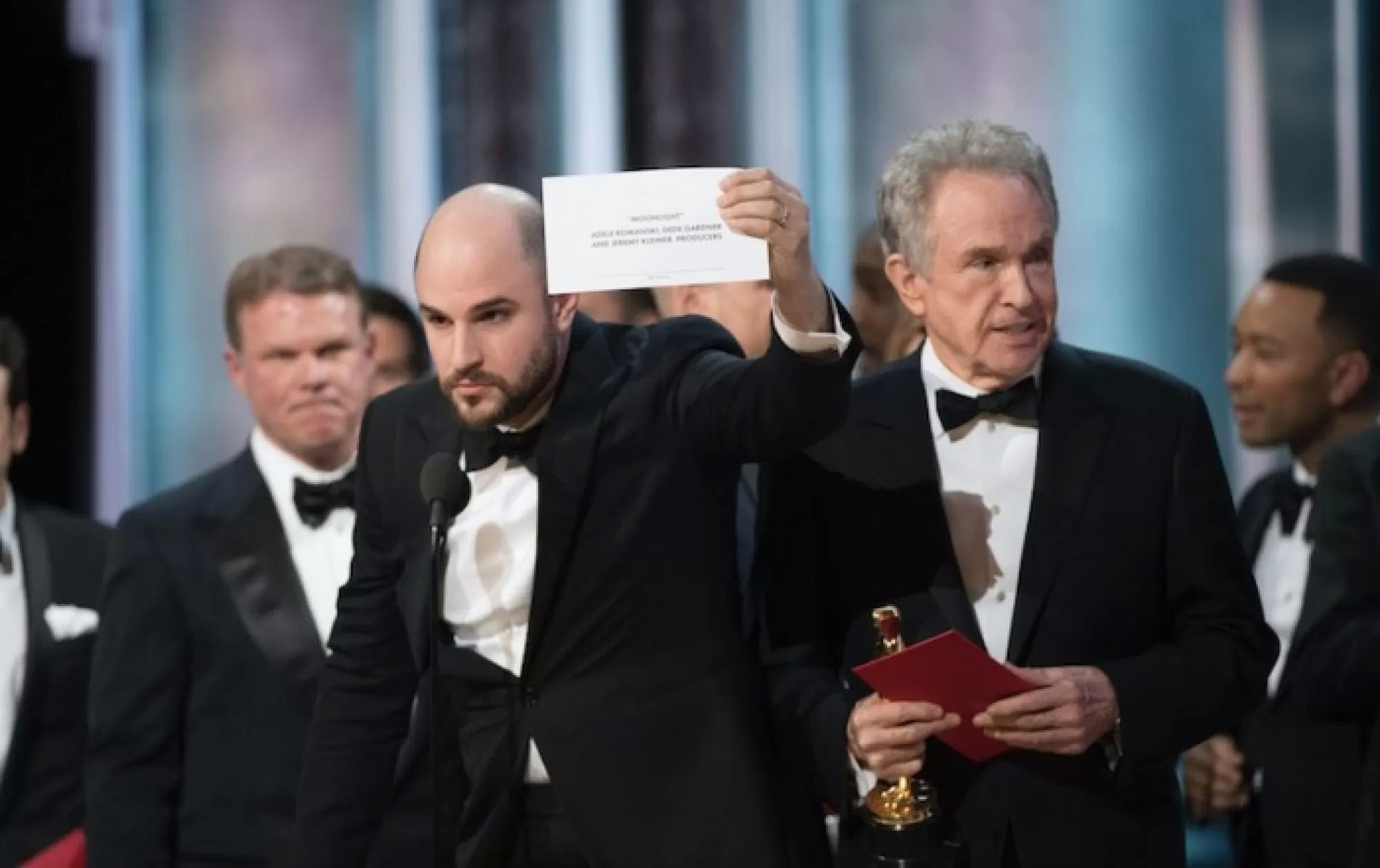 „ლა ლა ლენდის“ პროდიუსერი ჯორდან ჰოროვიცი უკვე სცენაზე იდგა და მადლობას იხდიდა, მაგრამ, მას აუხსნეს, რომ შეცდომა მოხდა და საბოლოოდ, ოქროს ქანდაკება „მთვარის შუქის“ შემქმნელებს გადაეცათ.