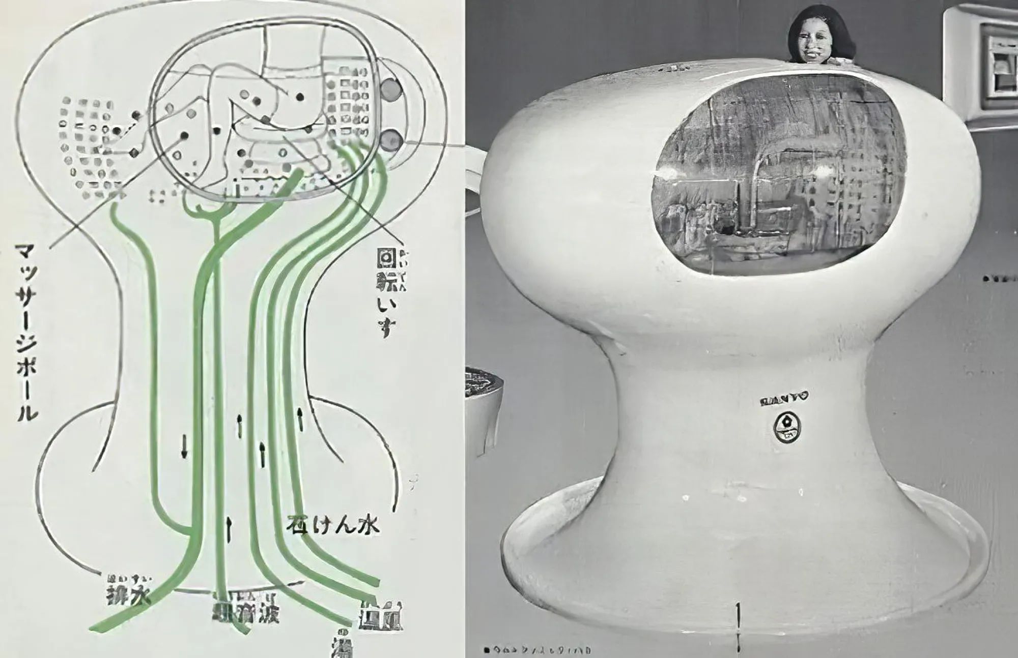 პირველი „ადამიანის სარეცხი მანქანა“ 1970 წელს Sanyo Electric-ის მიერ შეიქმნა და წარმოდგენილი იყო ოსაკას მსოფლიო გამოფენაზე. იმ დროს მოწყობილობა ადამიანის სხეულს ქაფისა და მასაჟის ლილვაკების დახმარებით წმენდდა, მაგრამ სირთულისა და მაღალი ღირებულების გამო, პროექტი არასდროს განხორციელებულა.